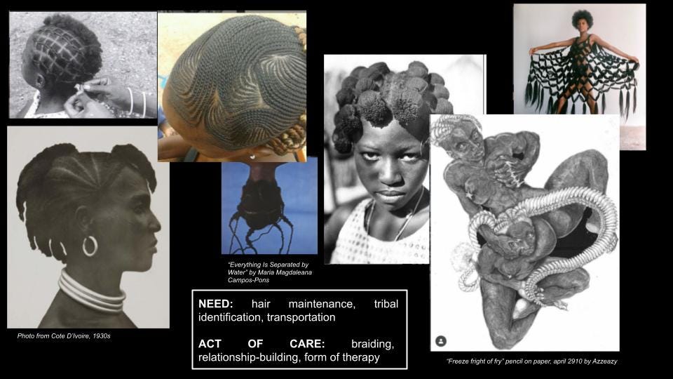 I made one relating to the act of care “braiding” that became synonymous with a sense of therapy, calmness, and relating back to myself.