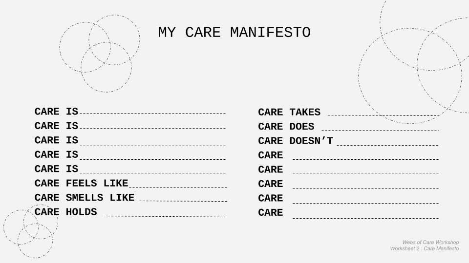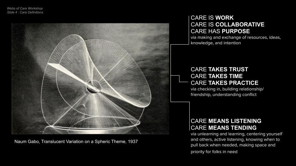 begin workshop: webs of care (with slides)